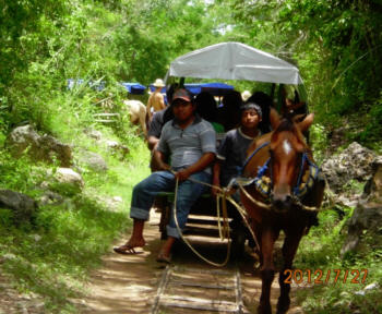 el que más vacío vaya se tiene que salir del riel para dar el paso al que va más lleno, estos rieles fueron hechos hace muchos años cuando trabajaban el henequén, y ahora los utilizan para subir y bajar a la gran cantidad de turistas que deciden tener esta increíble aventura.