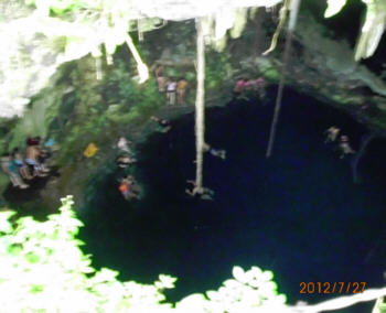 Después de un día de caminata por la zona arqueológica de Chichen Itzá te vendría bien darte un chapuzón en las verdes aguas del cenote para refrescarte. En su superficie se encuentra rodeado de vegetación y desde ahí se puede ver la profundidad que tiene. Para llegar deben bajar por una escalera hecha de piedra en donde encontrarás pequeños balcones para que admires su belleza desde diversos puntos, al llegar abajo, hay una plataforma que da acceso a sus aguas frescas y cristalinas en la que se pueden ver los peces que viven en él.